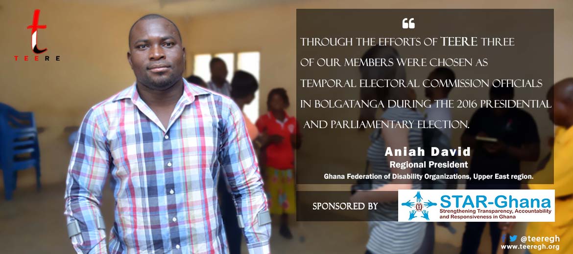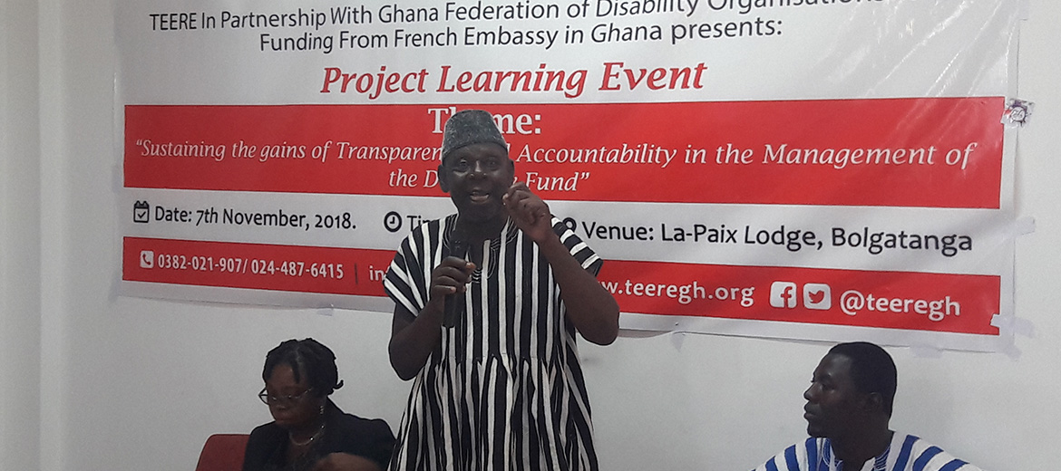 TEERE in partnership with the Ghana Federation of Disability Organisations with funding from the French Embassy in Ghana launched a project on the 27th September, 2017 dubbed “Promoting Transparency and Accountability in the management, disbursement procedures and Utilization of the 2% (now 3%) District Assembly common fund allocated... read more...