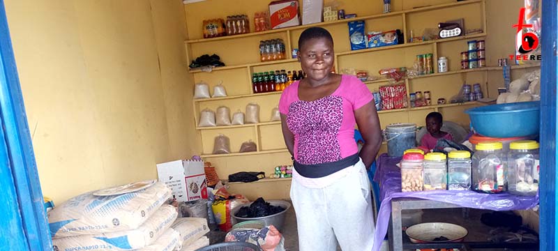 Madam Mary Limahame, an 18year old beneficiary of the fund in her provisions shop